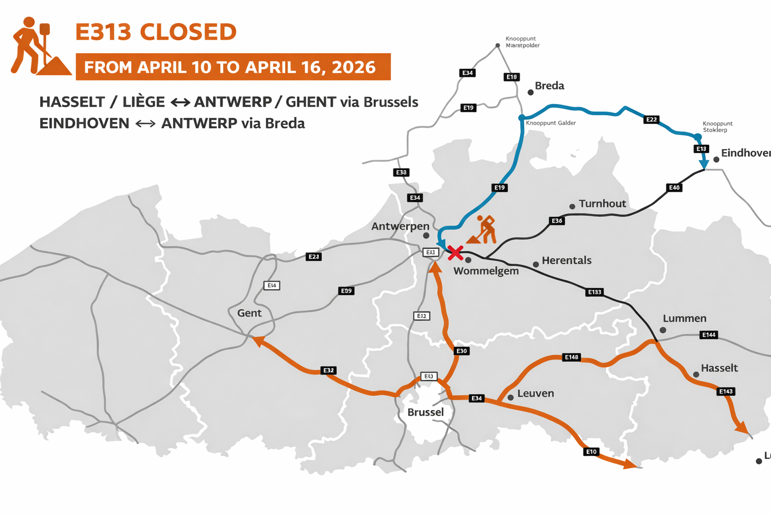 Chers client(e)s, Nous souhaitons vous informer de travaux d’infrastructure majeurs qui auront lieu du 10 au 16 avril 2026, et qui devraient avoir un impact significatif sur la circulation routière en Belgique. Durant cette période,